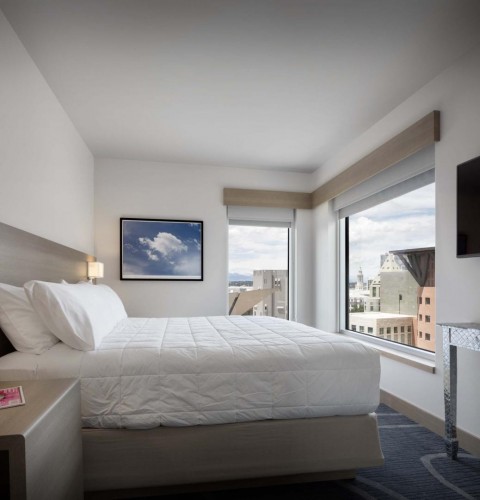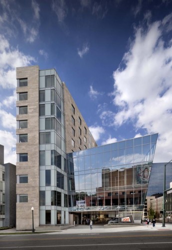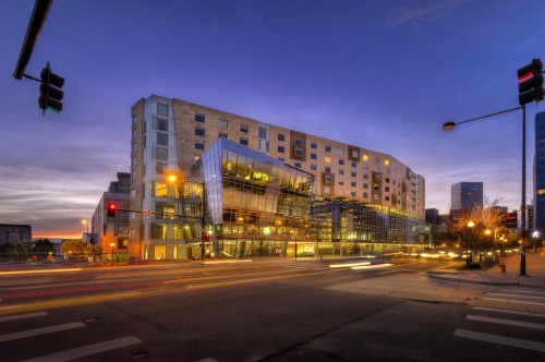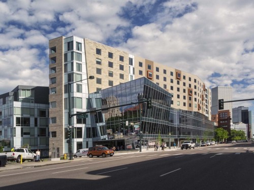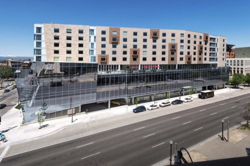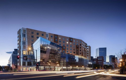 The North-West corner of 12th and Broadway in Denver Colorado is one of the most important corners in the city. Across the street on the East side of Broadway is the History Colorado Center. One block North is the Denver library and the Ralph L. Carr Colorado Judicial Center. However, this corner has been used for a parking lot in recent memory and has detracted from the overall aesthetics of the location. In the past ten years, many developments have been proposed for the site but were not found to be economical due to the site’s awkward shape and the relative remoteness from downtown. Enter Corporex with an idea for a boutique hotel over an office building. If it was going to work, the design team needed to solve several cost and logistics problems