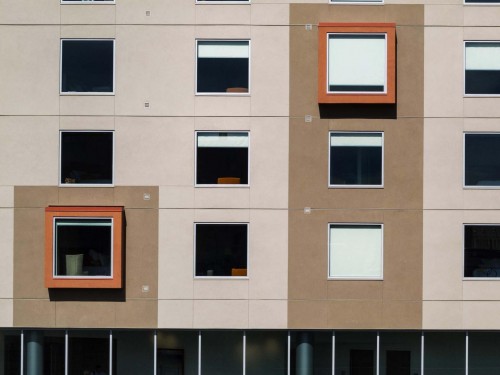 In addition, to satisfy compatibility and constructability issues between the composite steel framing below and the light gauge steel framing above, the stiffness issue common to light gauge buildings utilizing strapped wall lateral systems had to be solved. Typical straps are installed after all the dead load has been applied to the building otherwise they become loose and ineffective as the walls compress. This means drywall on the lower levels must wait until the floor slabs are installed on the upper levels. M&L solved this problem by inventing a system to pretension the strapped wall system as it was built. Not only did this stiffen up the light gauge system, it decreased the construction schedule as the drywall on the walls below could begin prior to completing all the floors above.