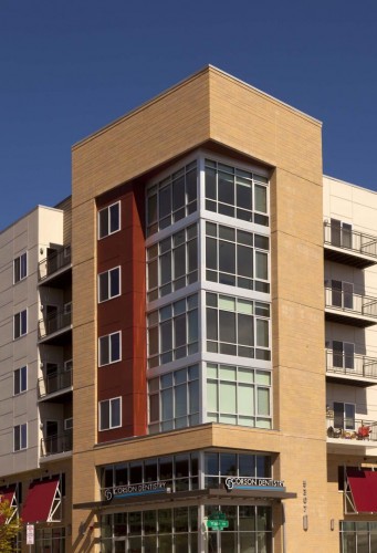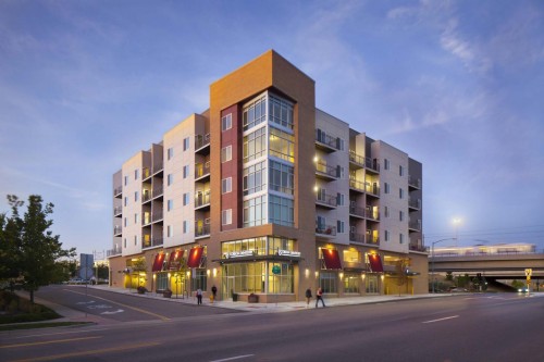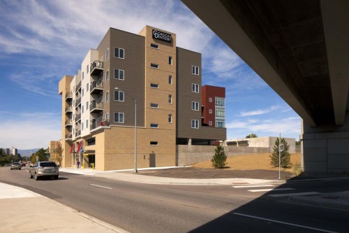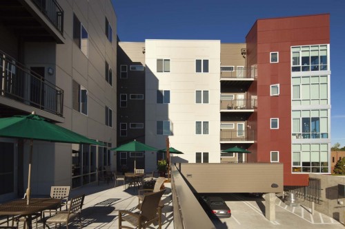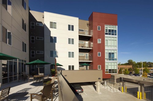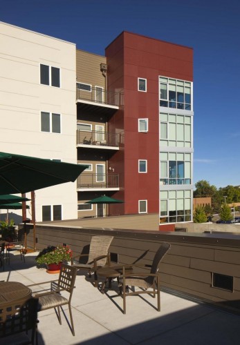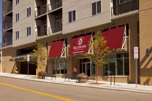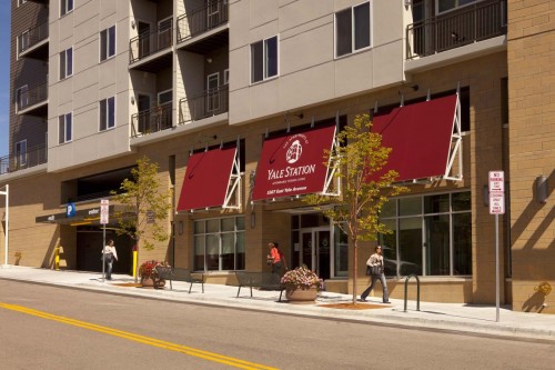 This project is a residential senior living facility adjacent to the Yale Station light rail. The facility is 6 stories, has 50 units, and is over 75,000 square feet in area. The building includes retail space, parking, a community area, and a garden center. This project consists of a four-story wood building over a two story partially below grade parking garage. The garage slabs are cast in place post tensioned concrete spanning to cast in place concrete columns. The building is wood framed from party wall to party wall to limit the overall height of the building. The outside of the building mirrors the overall theme of the buildings around it, i.e. stone, brick, concrete masonry, stucco, metal panels, and wood. The building is designed to give each occupant a sense of home, while at the same time providing the necessary accommodations to those who need them.