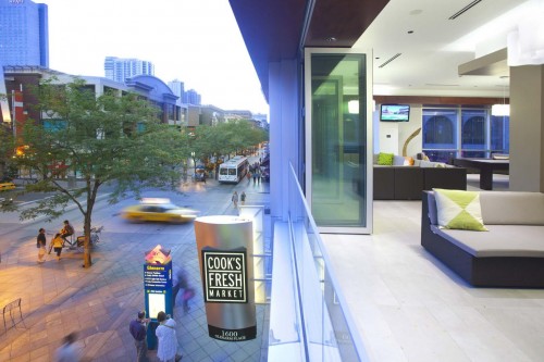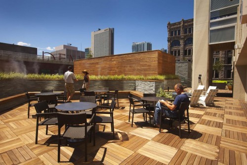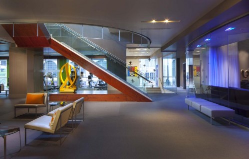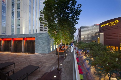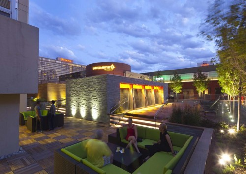 1600 Glenarm Place - a renovation by Davis Partnership Architects, Martino & Luth Structural Engineers, and Hyder Construction. It was originally the Security Life Building in Downtown Denver before being converted to an apartment building in 2006. This building, which houses 333 residential units and 30,000+ square feet of prime real estate, was in need of an amenities area renovation. This renovation included amenity areas on the 2nd and 3rd floors, as well as a new stairs connecting the levels to the main building which doubled as an architectural design feature. Renovation additions for this luxury apartment complex included a movie theater, conference room/business center, rooftop deck, waterfall feature, and fitness area.