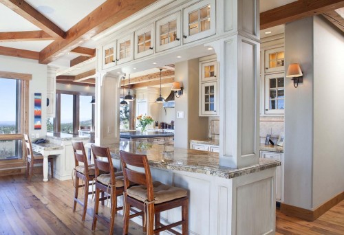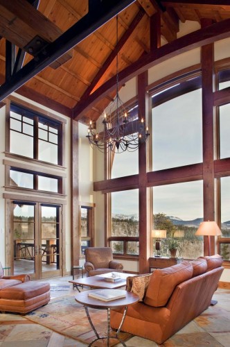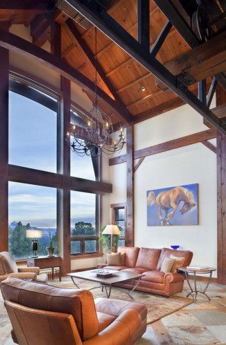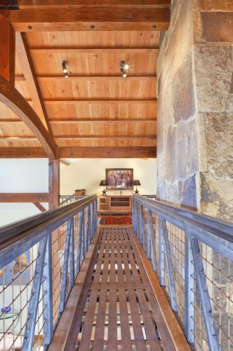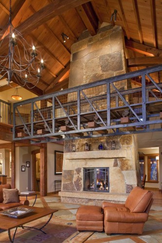 A Multi-million-dollar home located in Telluride Colorado. This grand home featured a timber open concept structure with mining elements used as part of the structural design. The structural systems of this house are generally exposed and help to create the architectural style. Utilizing natural materials and site mined stone, the architect expressed his vision and we, the structural engineer, were able to match our structure to his intent and be a part of a true masterpiece. Everything shown in this series of pictures, which illustrates the features of the great room, was designed and detailed are M&L’s drawings. The bridge over the great room is made from old mining carts welded to a tube steel bridge frame.