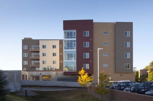 This project is a residential senior living facility adjacent to the Yale Station light rail. The facility is 6 stories, has 50 units, and is over 75,000 square feet in area. The building includes retail space, parking, a community area, and a garden center. This project consists of a four-story wood building over a two story partially below grade parking garage. The garage slabs are cast in place post tensioned concrete spanning to cast in place concrete columns. The building is wood framed from party wall to party wall to limit the overall height of the building. The outside of the building mirrors the overall theme of the buildings around it, i.e. stone, brick, concrete masonry, stucco, metal panels, and wood. The building is designed to give each occupant a sense of home, while at the same time providing the necessary accommodations to those who need them.